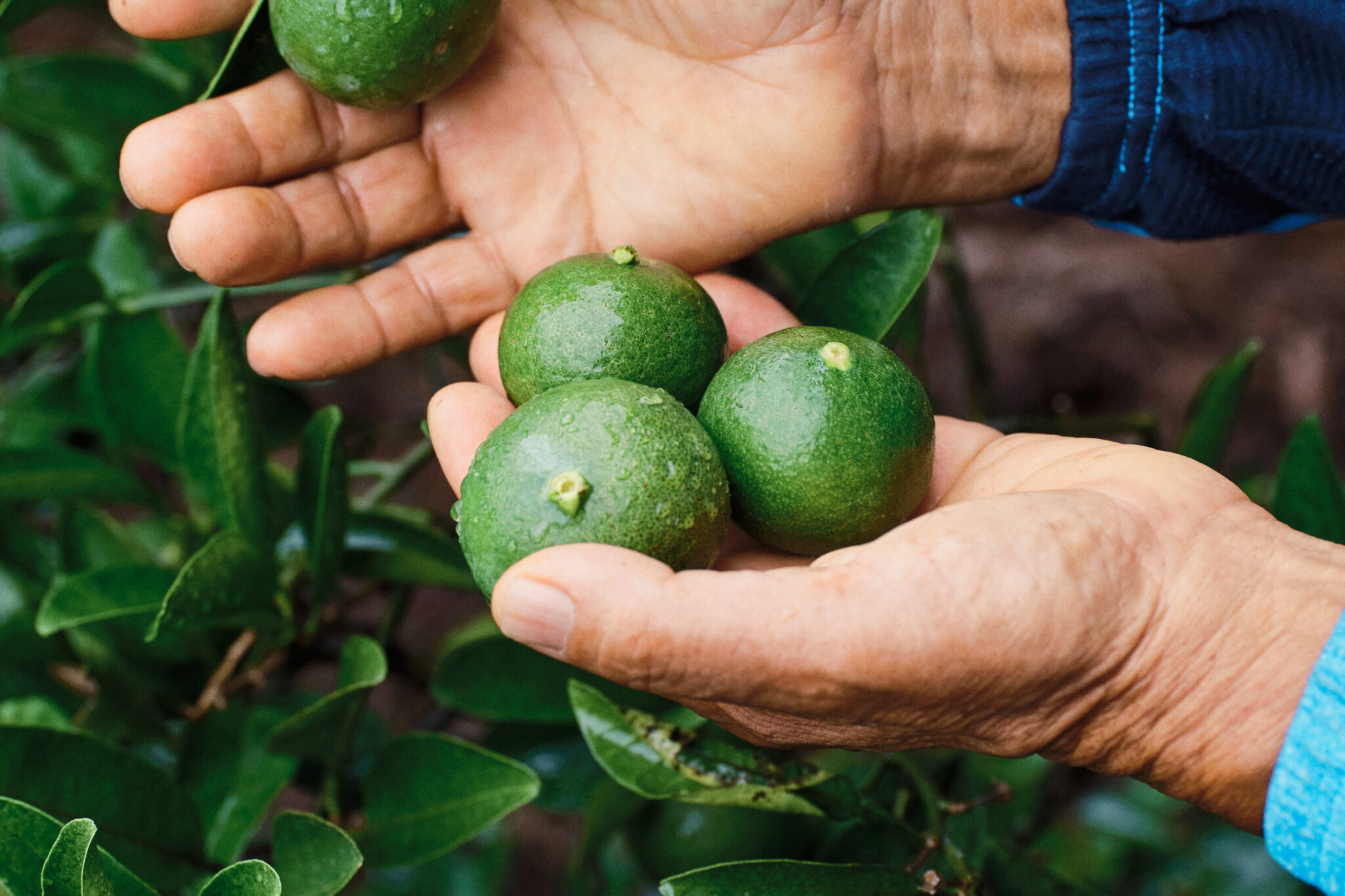 〈▲ 富田氏が育てるベルガモットは香りが高いのが特徴。果皮から精油を取るが、この畑のベルガモットは葉を揉むだけでも爽やかな香りが広がる〉